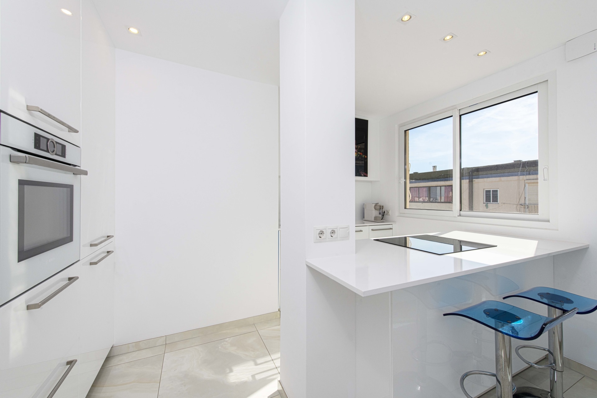Dieses großräumige Penthouse verfügt über eine ca. 90 m² große Sonnenterrasse mit umwerfendem Panoramablick auf die Stadt, den Hafen und das Meer bis hin zum Tramuntana Gebirge.