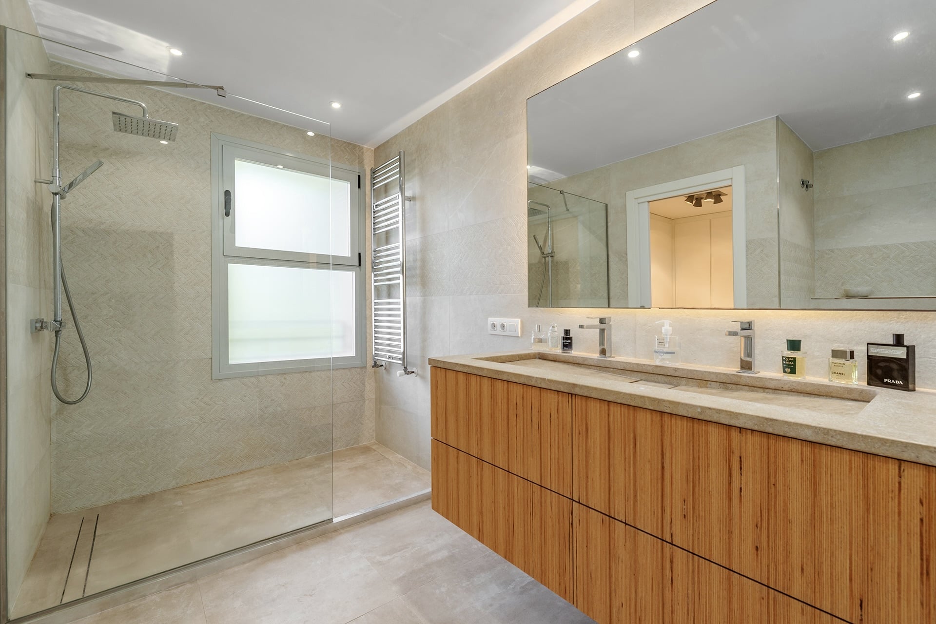 Lage: Sol de Mallorca hat sich als beliebte Wohngegend auf der Baleareninsel etabliert, die durch die Nähe zur Hauptstadt Palma eine hohe Lebensqualität verspricht. Das Zentrum von Palma ist mit dem Auto in 15 Minuten erreichbar. Der internationale Flughafen ist nur 25 Minuten entfernt. Positiv an dieser mallorquinischen Wohngegend ist, dass Sol de Mallorca - trotz der Nähe zum Flughafen - kein Flugkorridor ist. Die Einheimischen genießen ein ruhiges und luxuriöses Leben, da es keine störenden Faktoren wie Industrie oder Durchgangsstraßen gibt. Der Panoramablick von Immobilien wie dieser Designer-Villa auf beeindruckende Felsformationen oder kleine verträumte Buchten ist beeindruckend. Darüber hinaus ist diese traumhaft schöne Lage bekannt für ihre natürlichen Pinienhaine oder die idyllische "Drei-Finger-Bucht" namens "Portals Vells".