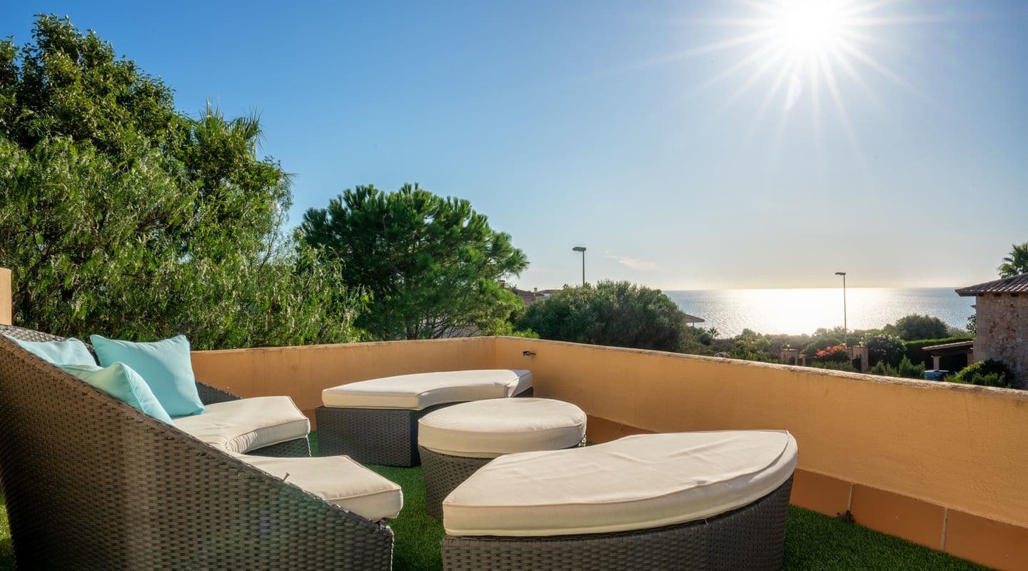 Im Obergeschoss befinden sich 3 weitere Schlafzimmer mit Bad en Suite, eins davon ist das Hauptschlafzimmer mit Ankleidebereich und Zugang zur privaten Terrasse mit Meerblick.