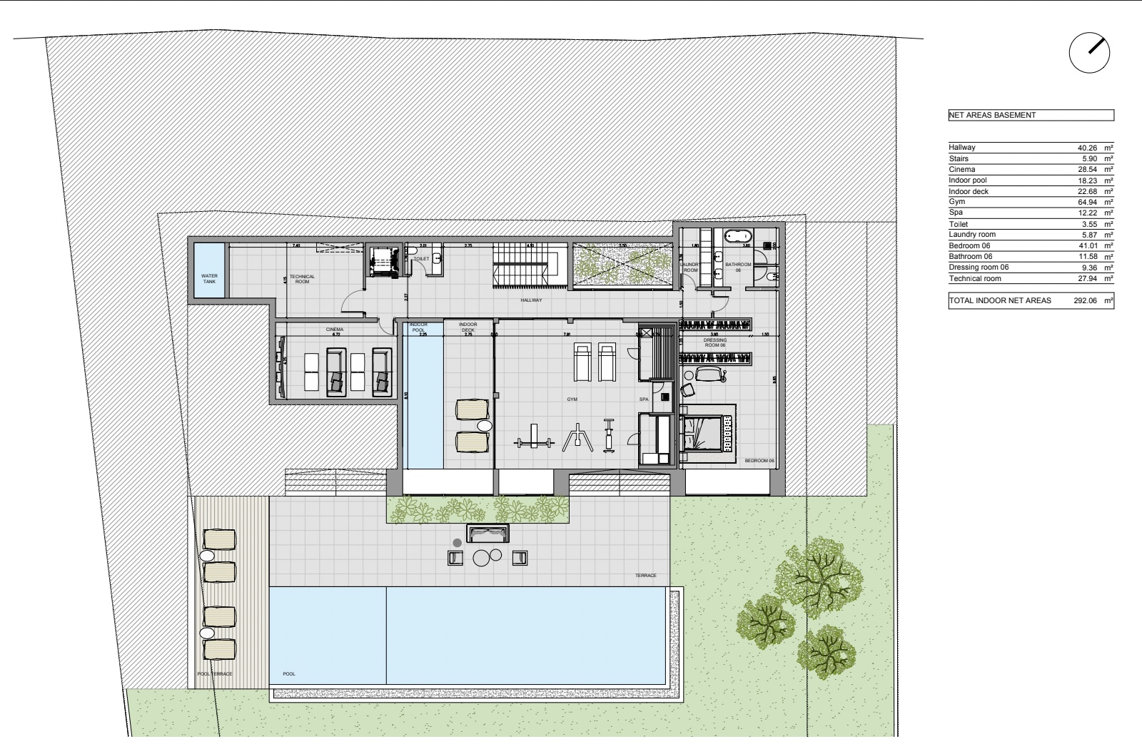 Außerdem finden Sie hier ein weiteres Schlafzimmer mit Bad en suite und Ankleidezimmer, ein Gäste-WC, einen Kinoraum, eine Waschküche und einen Technikraum.