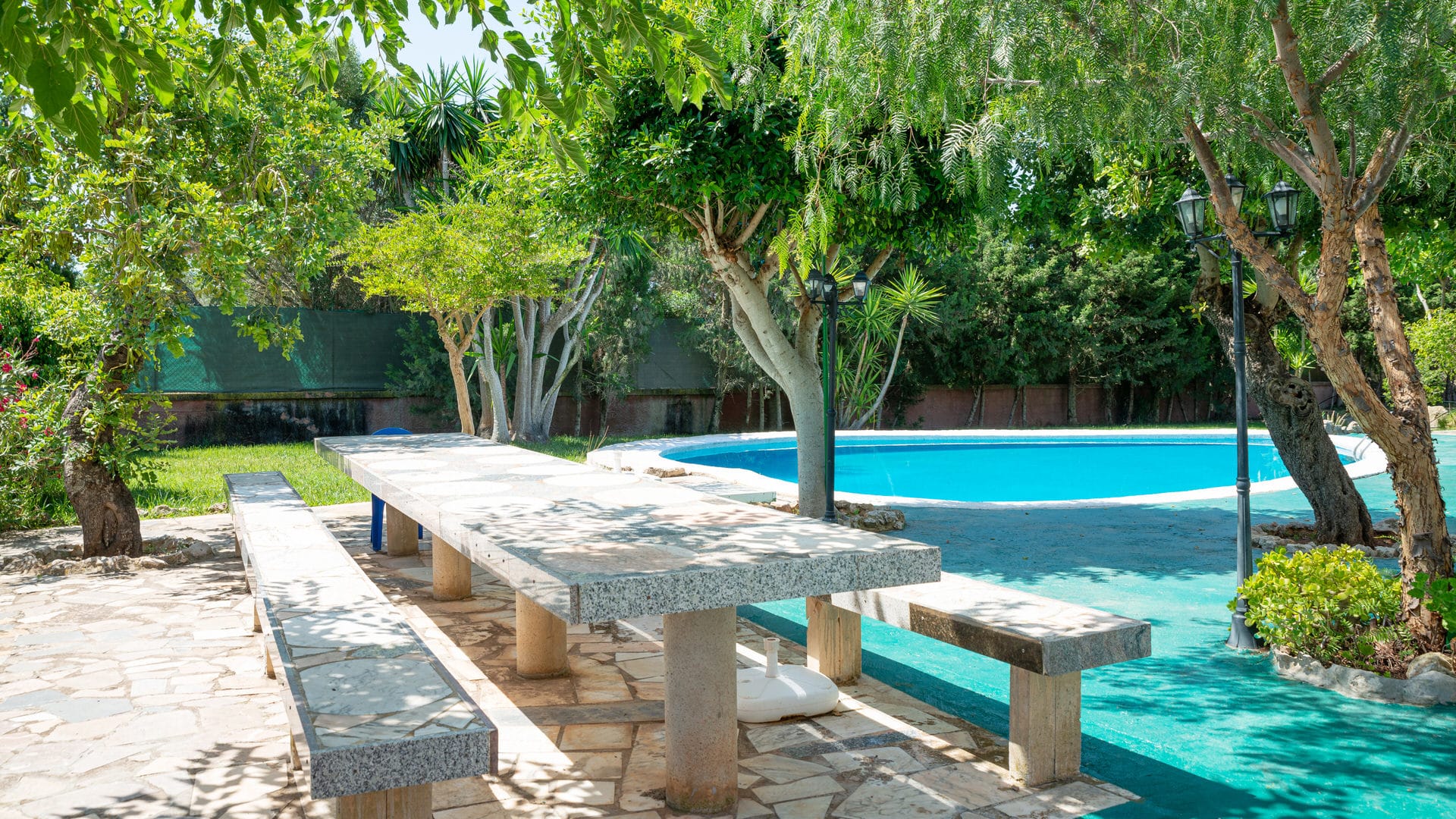 Von hier aus haben SIe auch Zugang zur großen Terrasse die zum Swimmingpool führt und dem BBQ-Bereich
