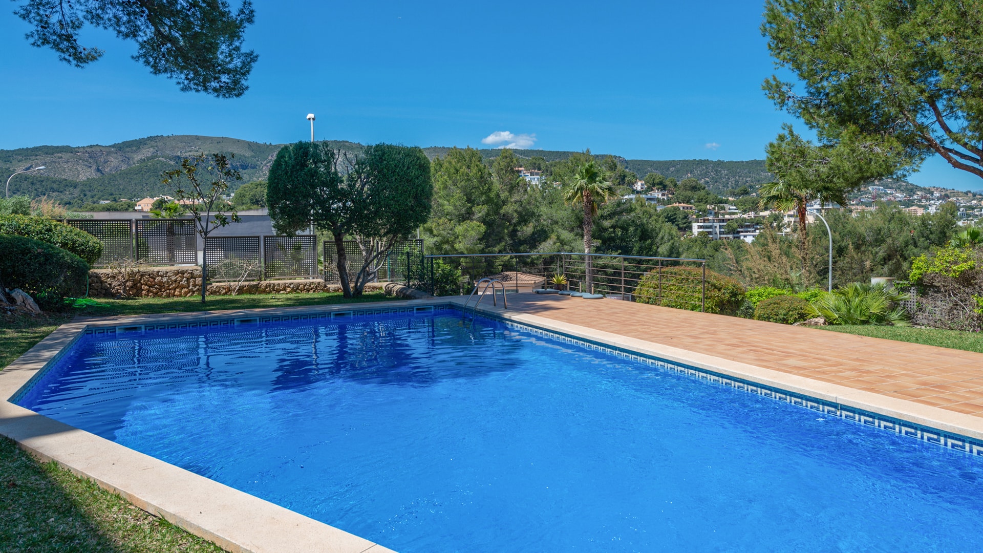 Lage: Das fantastische Penthouse befindet sich in Bendinat, einer beliebten Wohngegend zwischen Portals und Illetes. In Bendinat wohnen viele Ganzjahres Residenten und Einheimische, von grossen Tourismusströmen ist der Ort verschont geblieben. Die Bewohner profitieren von einer guten Infrastruktur und Verkehrsanbindung. So ist die Inselhauptstadt Palma in nur 10 Minuten Fahrzeit erreicht und auch bis zum Flughafen benötigt man nur 20 Minuten. Bendinat hat eine hübsche kleine Bucht die zum Baden einlädt, doch auch die Badebuchten von Ilettas und Portals sind nur wenige Minuten mit dem Auto entfernt. Der königliche Golfplatz von Bendinat liegt direkt unterhalb dieser Wohnanlage und lädt zum ganzjährigen Golfen ein.