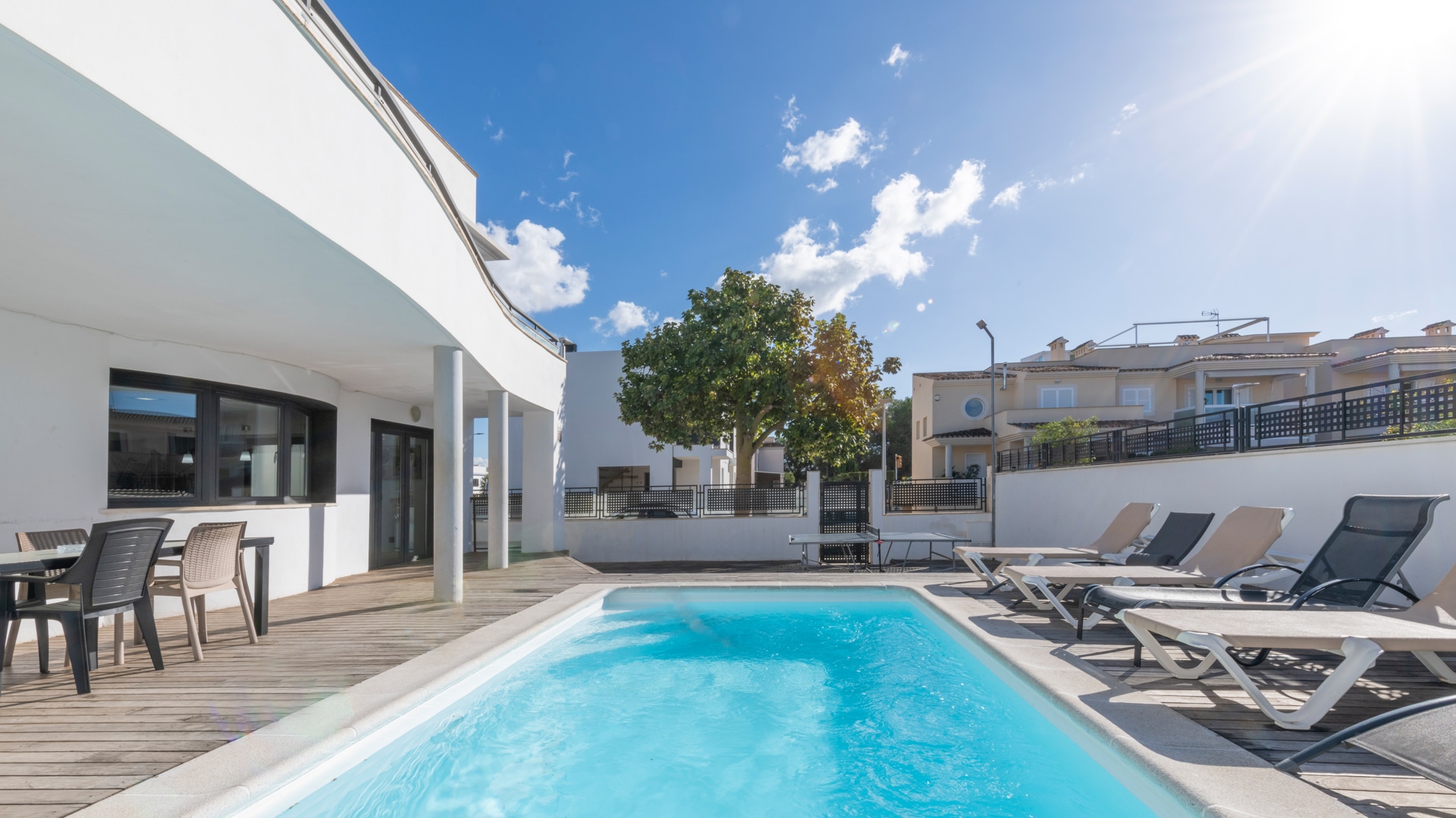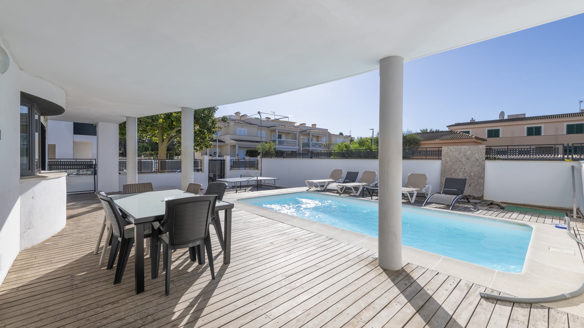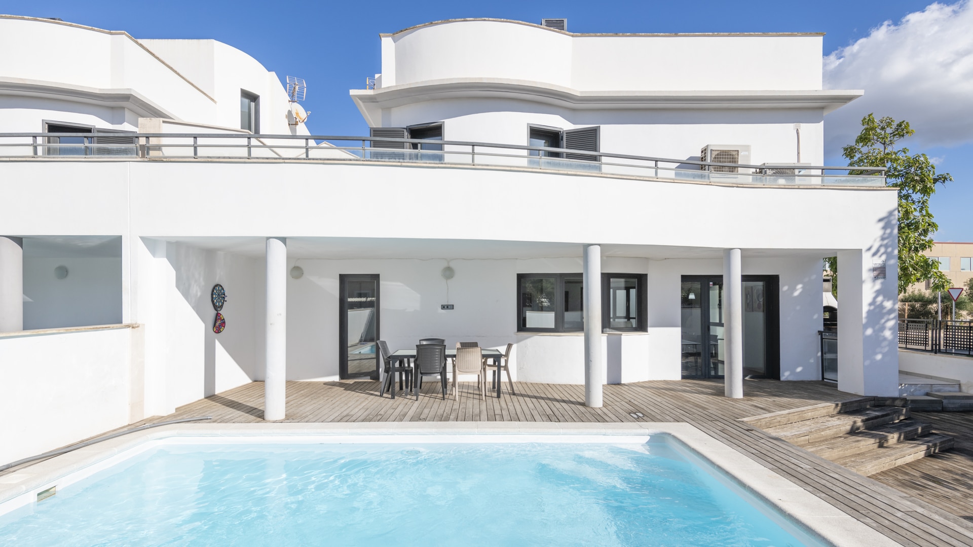 Ausstattung: Ausstattung und besondere Merkmale Diese luxuriöse Villa ist so ausgestattet, dass sie Komfort, Stil und Funktionalität bietet. Sie ist sofort bezugsfertig und kann auch weiterhin als Ferienunterkunft mit hohem Standard genutzt werden: Privater Swimmingpool und Solarium: Ideale Räume, um die mediterrane Sonne in absoluter Privatsphäre zu genießen. Privater Garten und Terrasse (50 m²): Perfekt für Freizeit, Barbecue oder Entspannung im Freien. Renovierte und voll ausgestattete offene Küche: Modern, funktionell und bereit, Gäste zu empfangen oder große Veranstaltungen vorzubereiten. Komplette Klimaanlagen: Klimaanlage und individuelle elektrische Heizung für maximalen Komfort zu jeder Jahreszeit. Hochwertige Ausstattung: Parkettböden, Drehkipp-Aluminiumfenster mit Doppelverglasung, Fensterläden und Panzertür. Komfort und Zweckmäßigkeit: Kamin, private Garage, Abstellraum, Waschküche, Einbauschränke und Rauchabzug. Sicherheit und Privatsphäre: Panzertür, Fensterläden und Qualitätsfenster, die Ruhe und Wohlbefinden garantieren. Vollständig möbliert und betriebsbereit: Es sind keine Renovierungsarbeiten oder zusätzliche Investitionen erforderlich. Diese Kombination aus Luxusausstattung, Komfort und Funktionalität bietet nicht nur einen außergewöhnlichen Lebensstil, sondern maximiert auch die Attraktivität der Villa als hochprofitable touristische Investition.