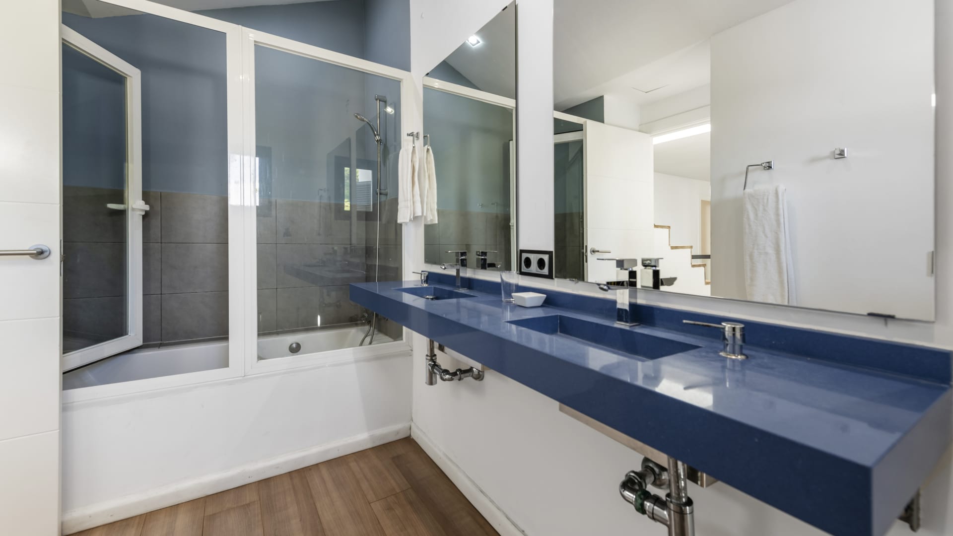 Parkettböden, Drehkipp-Aluminiumfenster mit Doppelverglasung