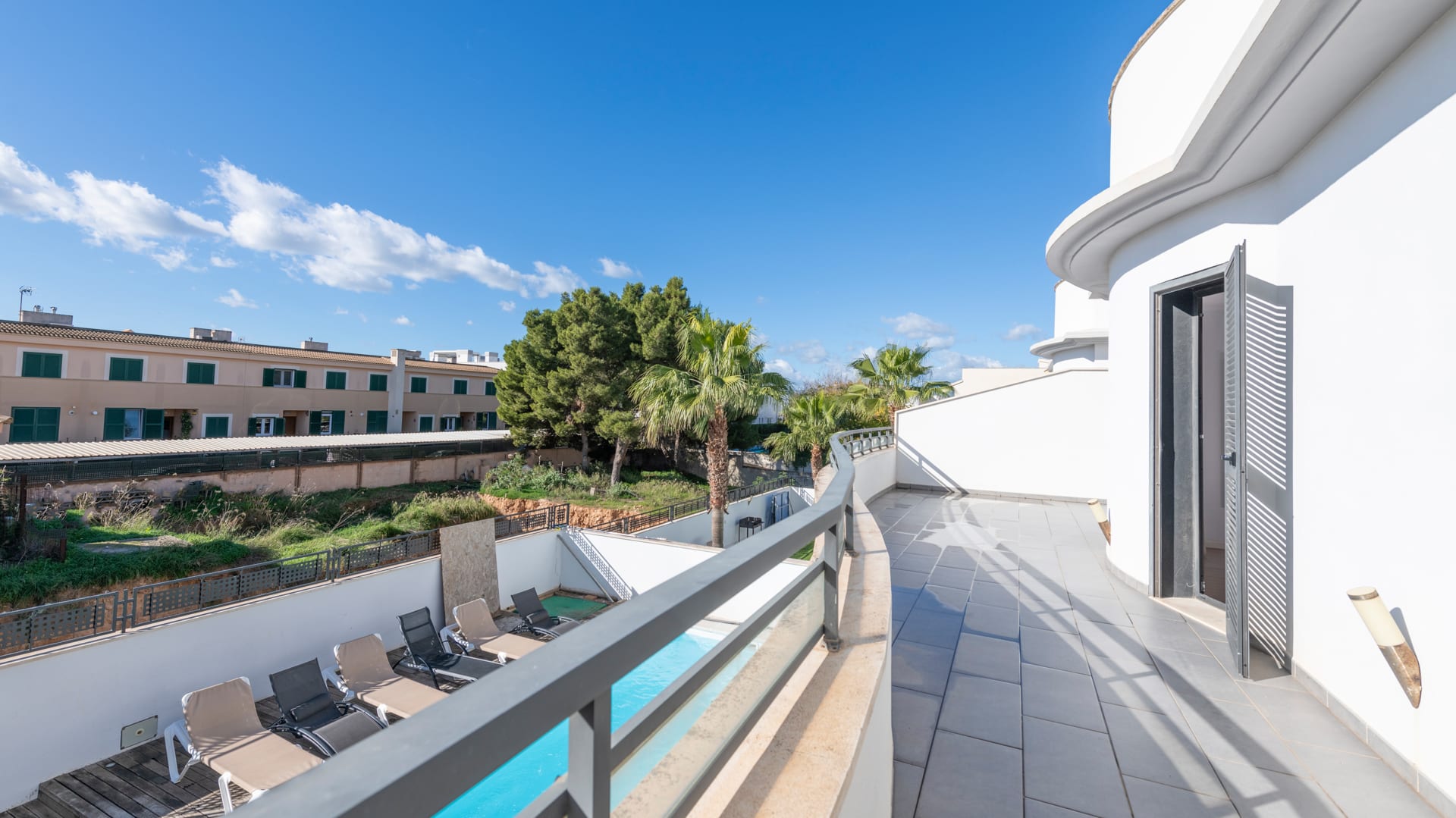 Privater Swimmingpool und Solarium mit Meerblick.