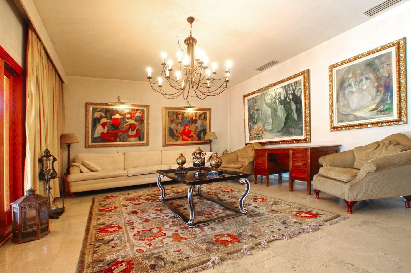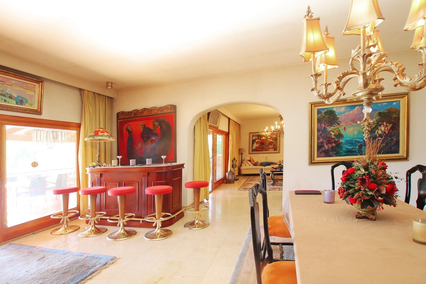 Auf einem 4680 m² großen, nach Süden ausgerichteten Grundstück in der exklusiven Gegend von Son Vida, genießt diese schöne Villa den ganzen Tag Sonnenschein. Mit einer Wohnfläche von ca. 483 m², befindet sich auf einer Ebene die Eingangshalle, ein großer Wohn- / Essbereich mit offenem Kamin, der direkt auf eine überdachte Terrasse führt, ein weiteres Wohnzimmer, eine voll ausgestattete Küche, 5 Schlafzimmer und 5 Bäder ensuite. Eine Ebene tiefer finden wir den schönen Pool umgeben von weitläufigen Terrassen. Die Villa bietet auch ein unabhängiges Gästehaus mit 1 Schlafzimmer von ca. 60 m².
