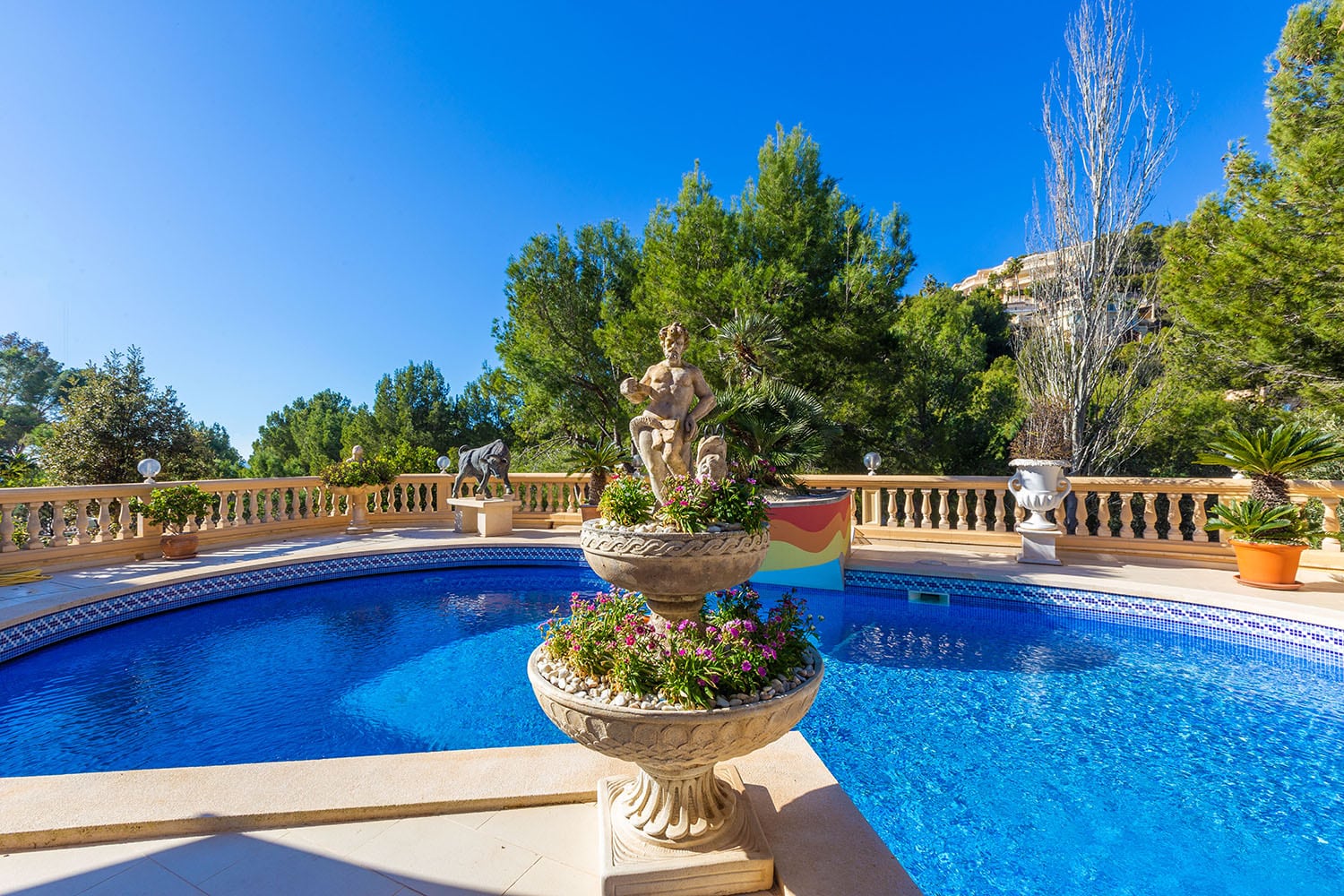 Das teils mit Naturstein verkleidete Gebäude strahlt ein einladendes mediterranes Flair aus und ist von wunderschönen, offenen sowie überdachten Terrassen umgeben, die einen großen Poolbereich einrahmen.