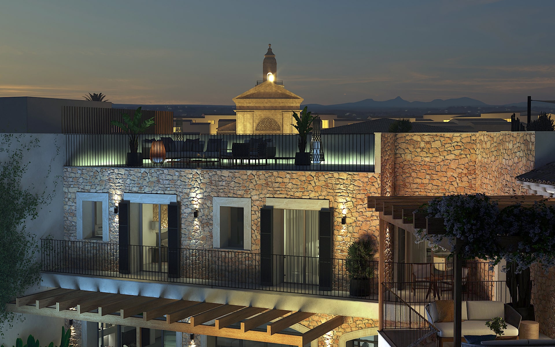 Dies ist eines von 3 exklusiven Dorfhaus Projekten welche im Herzen von Ses Salines erbaut werden, jeweils bestehend aus einem Haupthaus und einem unabhängigen Gästehaus.