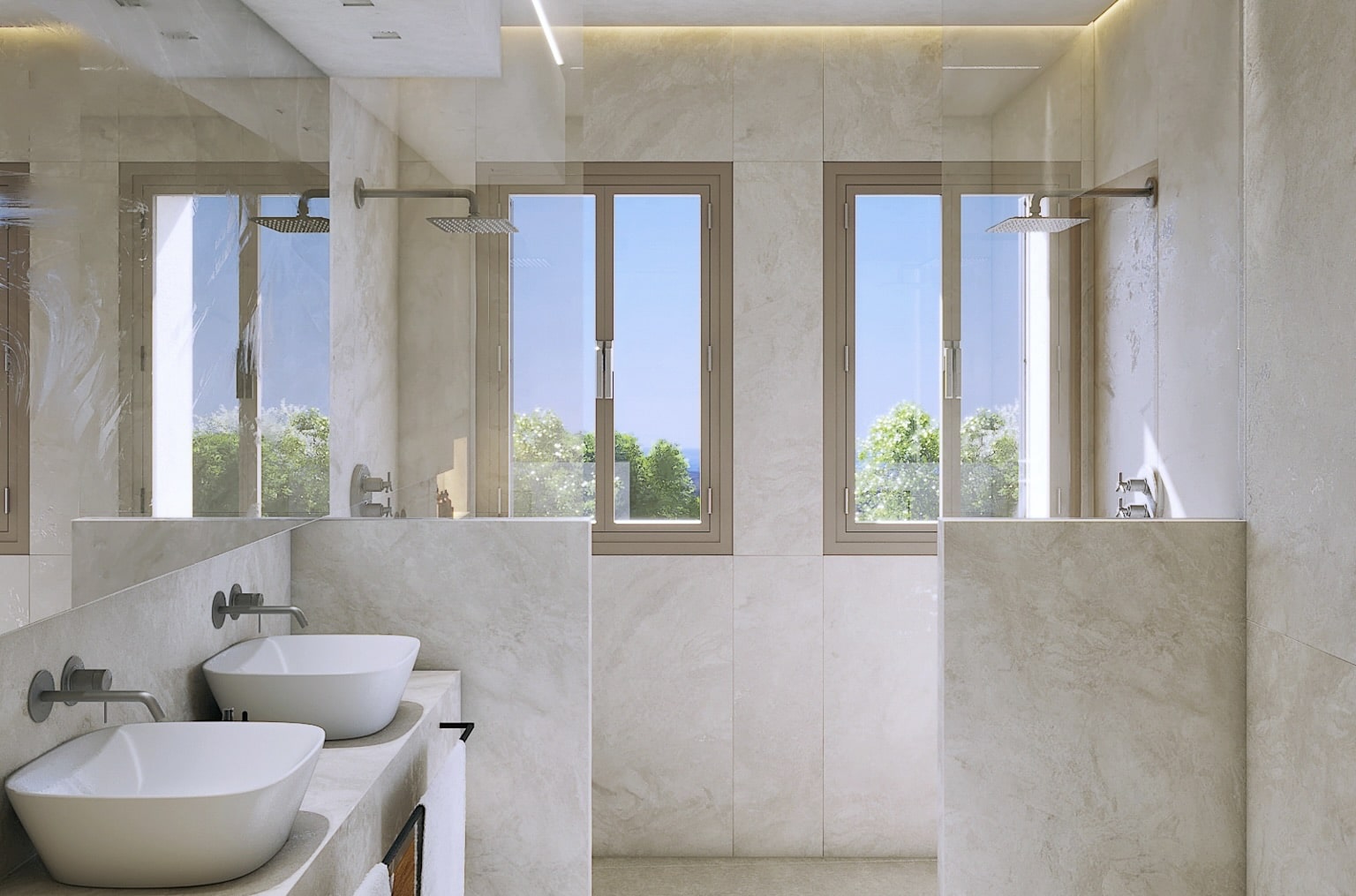 Auf der ersten Etage wird man vier Schlafzimmer, alle mit Bädern en suite finden, die teilweise Zutritt auf eine weitere Terrasse haben werden.