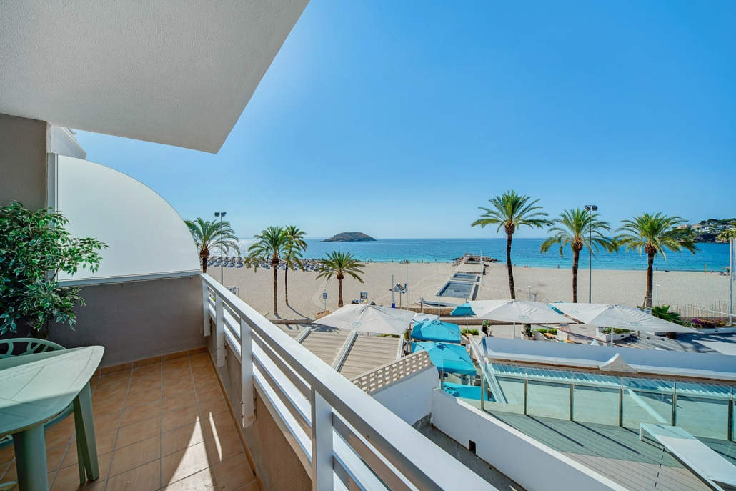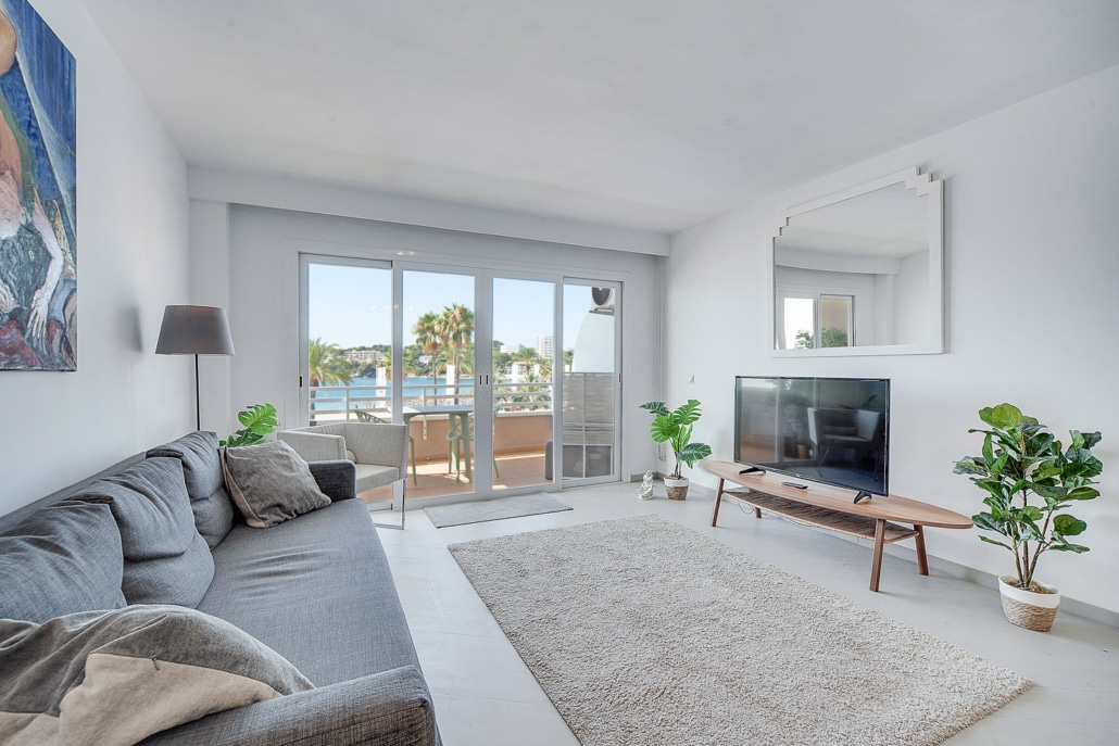 Dieses komplett sanierte, luxuriöse Designer-Apartment befindet sich in 1. Meereslinie, direkt am Calviá Beach und bietet einen fantastischen Panoramablick auf den Strand und das Meer.