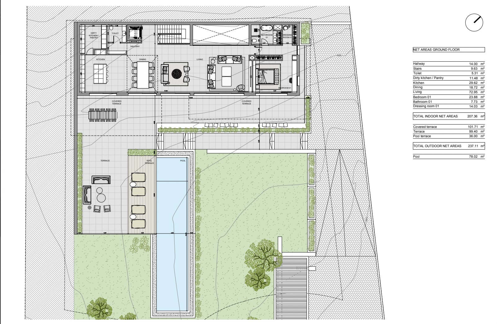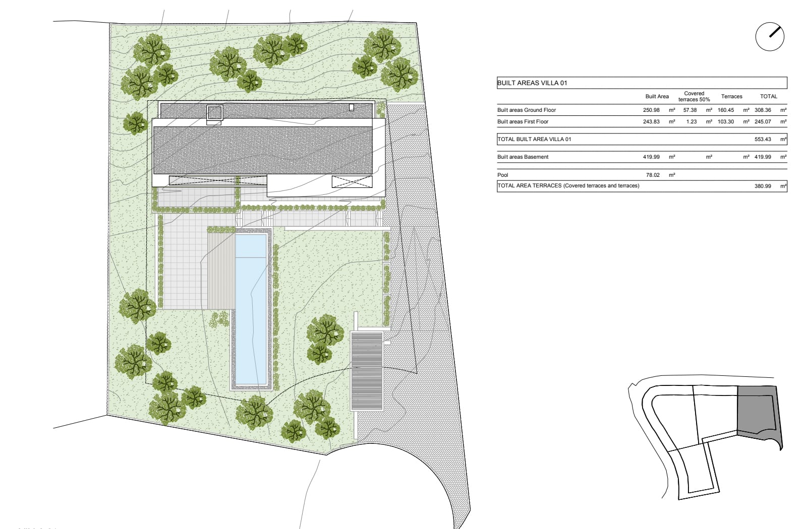 Auf einem ca. 2.452 m² großen Grundstück entsteht ein exklusives Villenprojekt, das höchsten Ansprüchen an Architektur, Design und Lebensqualität gerecht wird. Die geplante Villa mit einer Wohnfläche von ca. 718 m², verteilt auf drei Ebenen, bietet Ihnen ein großzügiges Raumangebot für individuelle Wohnträume.