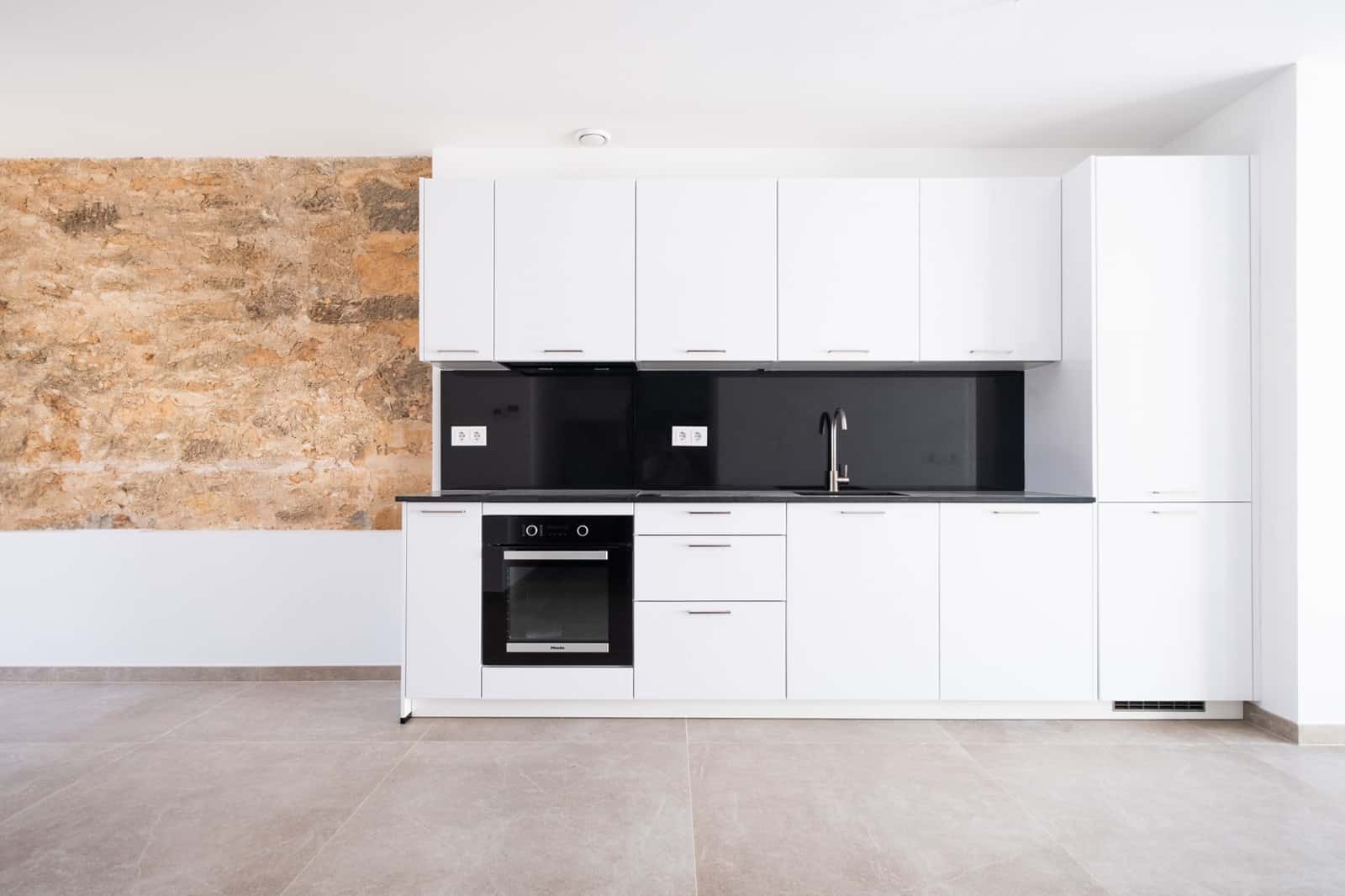 Großformatige Natursteinfliesen, Alufenster mit mallorquinischen Klappläden, eine energie- effiziente Aerothermie-Anlage, Fußbodenheizung und Klimageräte sorgen ganzjährig für ein angenehmes Wohngefühl. Ein modernes Schalterprogramm, Netzwerkanschlüsse und eine