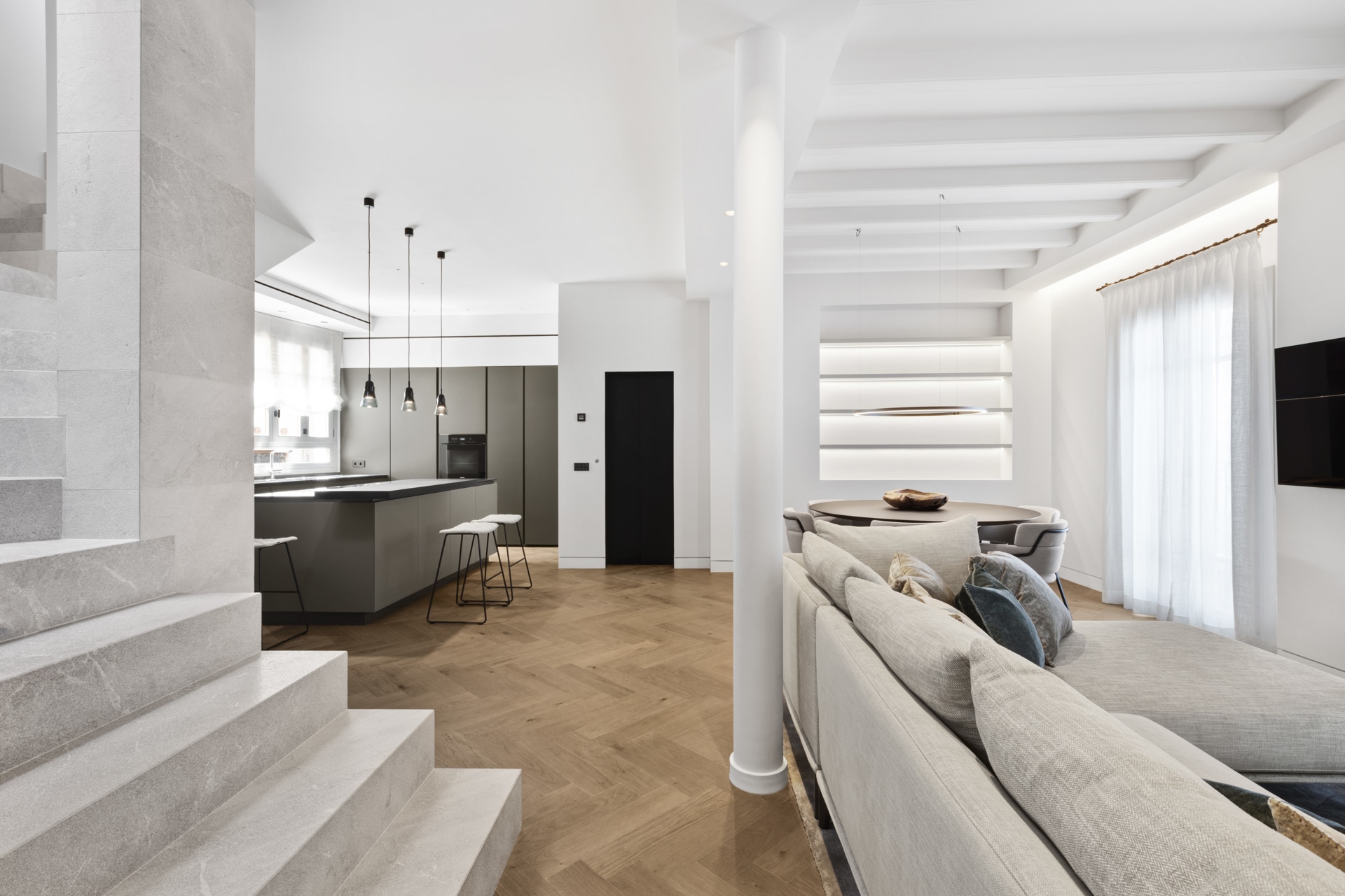 Dieses kernsanierte Stadthaus befindet sich in bester Lage von Palma und wurde 2018 umfassend und von Grund auf neu errichtet. Dabei wurde viel Wert auf die ursprüngliche Architektur der Immobilie gelegt, die teilweise Denkmalgeschützt ist (Fassade).