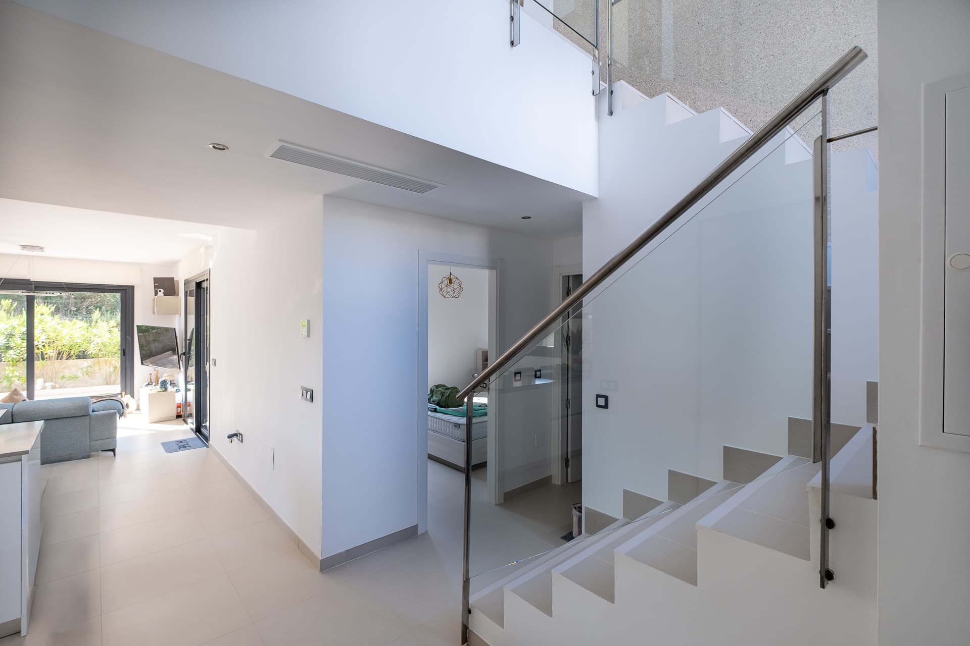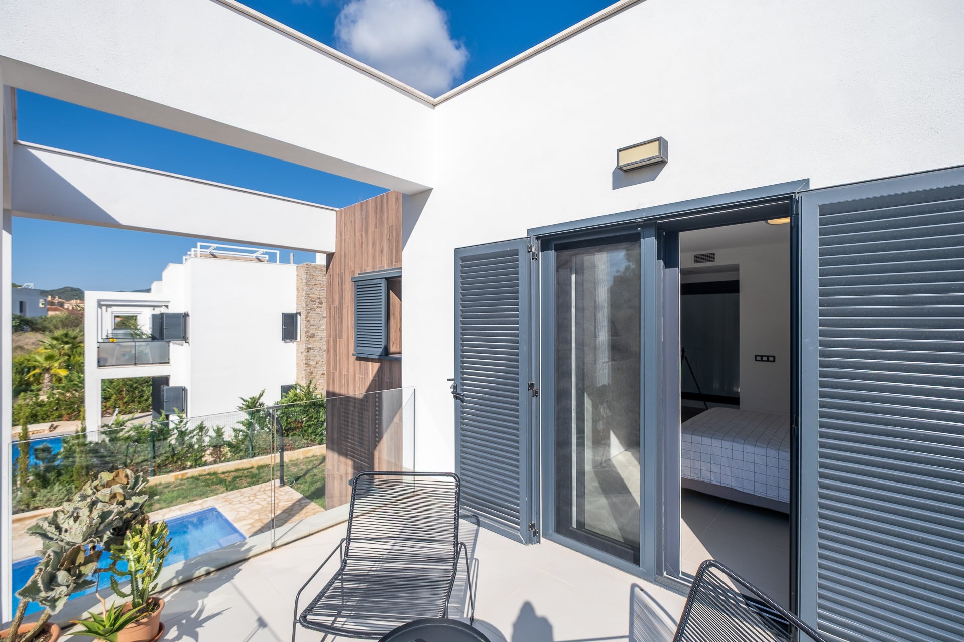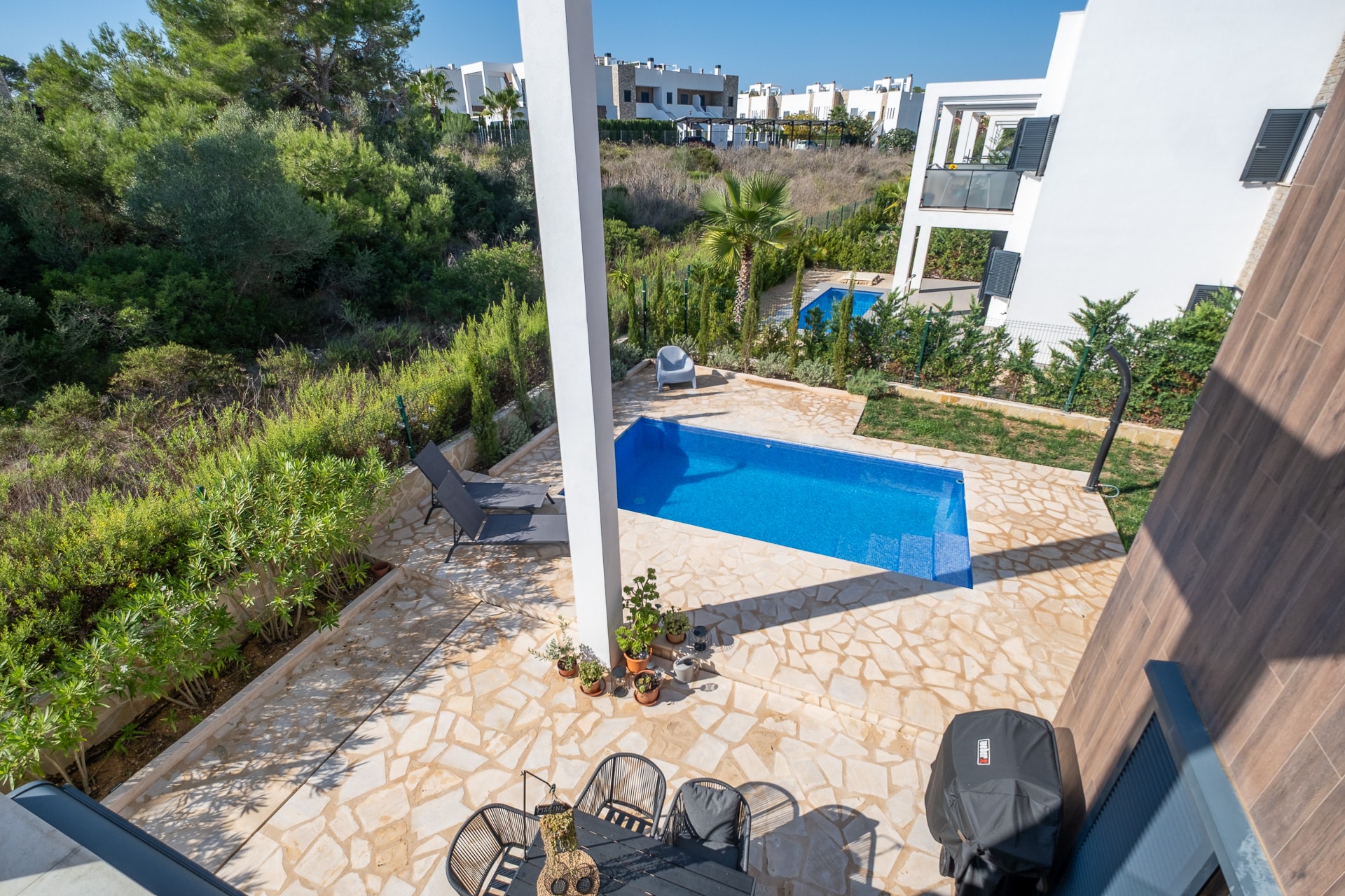 Ausstattung: Betritt man das moderne Einfamilienhaus, fällt direkt die weiße Küche mit hochwertigen Siemensgeräten und grauer Granitplatte ins Auge. Der praktische Wohn- und Essbereich lädt zum Verweilen ein. Insgesamt verfügt das Haus über drei Schlafzimmer (davon eines mit Bad en suite) und drei vollwertige Bäder mit Fußbodenheizung, die viel Platz für die ganze Familie bieten. Der auch noch ausbaufähige Keller bietet zusätzlichen Stauraum, hier befindet sich auch das nachgerüstete Entkalkungssytem, Wasseraufbereitung, was weiteren Komfort bietet. Es wurde hochwertiger Moskitoschutz für Fenster und Türen verbaut, ein separates Tor zum Grundstück für Pool- und Gartenpfleger gesetzt und ein zusätzlicher Fassadenschutz am Dach angebracht. Das Haus ist in den Innenräumen und außen auch videoüberwacht. Besonders hervorzuheben ist der neu angelegte Poolbereich mit Privatpool, neuem Rasen und hochwertigen Steinen aus Santanyí. Hier kann man die warmen Tage genießen und sich im Pool erfrischen. Die PV-Anlage sorgt dafür, dass KEINE Stromkosten entstehen und auch ein überdachter Stellplatz für Ihren Pkw ist ebenfalls auf dem Grundtück vorhande, was den Komfort des Hauses noch erhöht. Dank seiner Ausstattung und Lage eignet sich die Immobilie ideal als Ferien- und Vermietobjekt. Bis zu 3800 Euro monatliche Mieteinnahmen sind möglich, was diese Investition besonders attraktiv macht. Wer hier wohnt, kann nicht nur die Ruhe und Idylle genießen, sondern auch von den zahlreichen Möglichkeiten profitieren, die das Haus bietet. Besichtigen Sie diese hoch wertige Objekt dirkt über unseren 3-D-Rundgang, dieser wird zeitnah dem Angebot hinzugefügt.