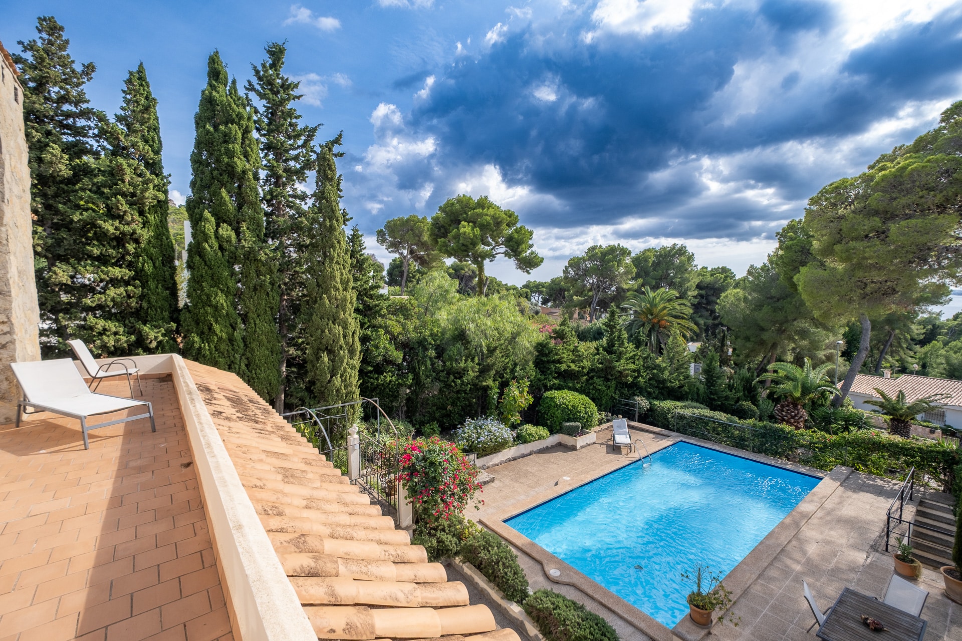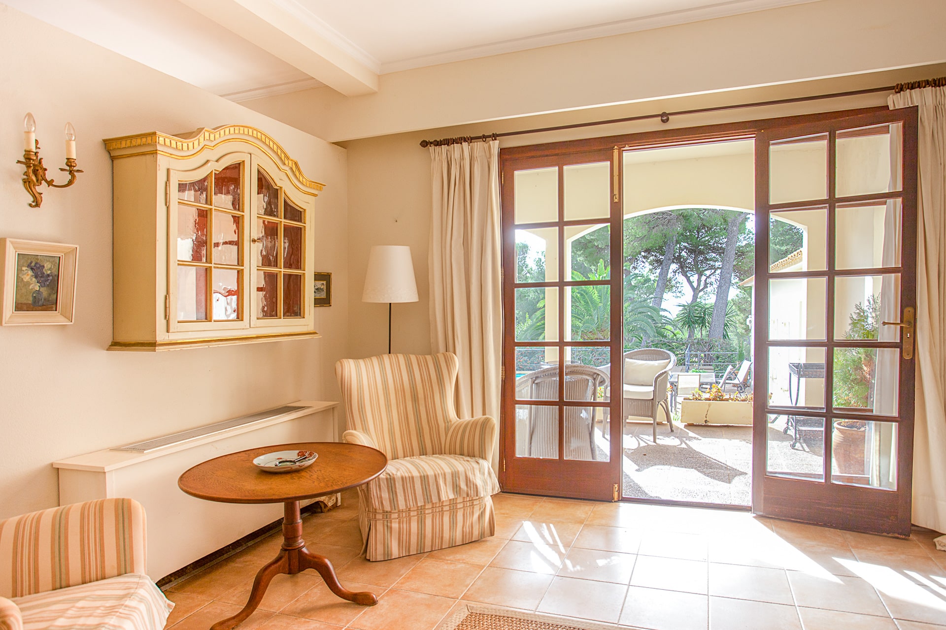 Durch die erhöhte Lage und die gute Architektur sowie der alte Baumbestand genießt dieses Haus teilweise Meerblick sowie viel Privatsphäre.