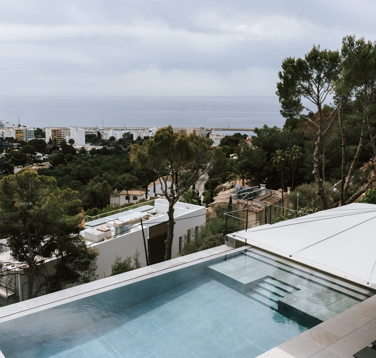 Diese moderne Villa befindet sich in der prestigeträchtigen Gegend Costa den Blanes und bietet einen herrlichen Meerblick sowie neueste Technologien & Design.