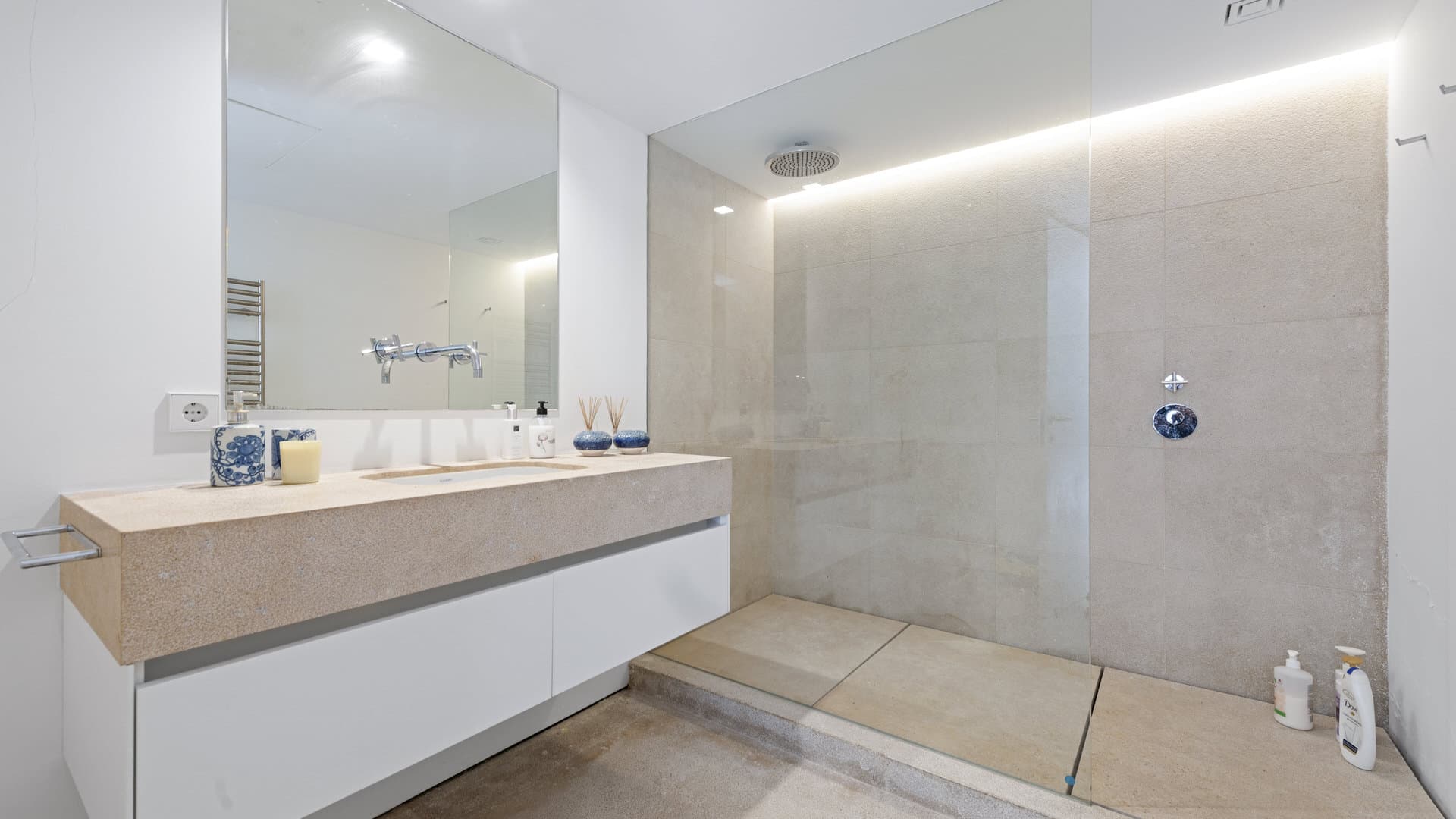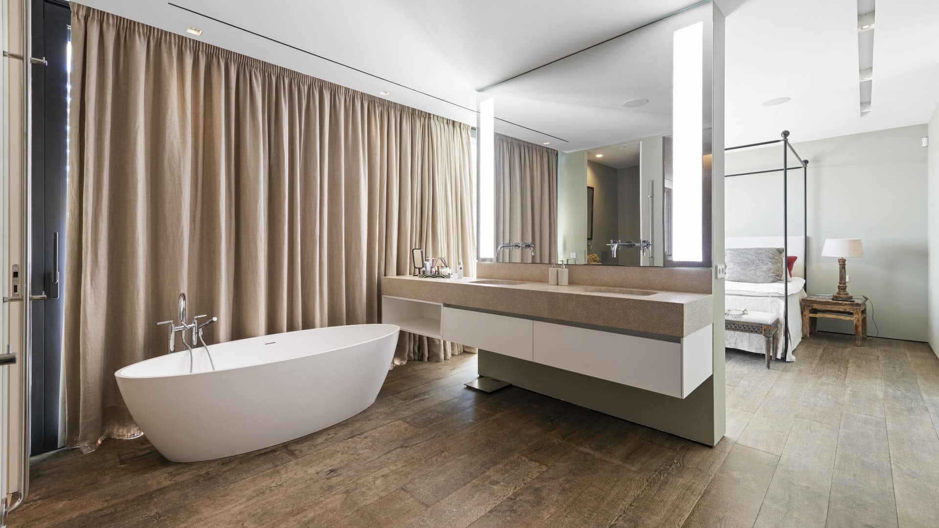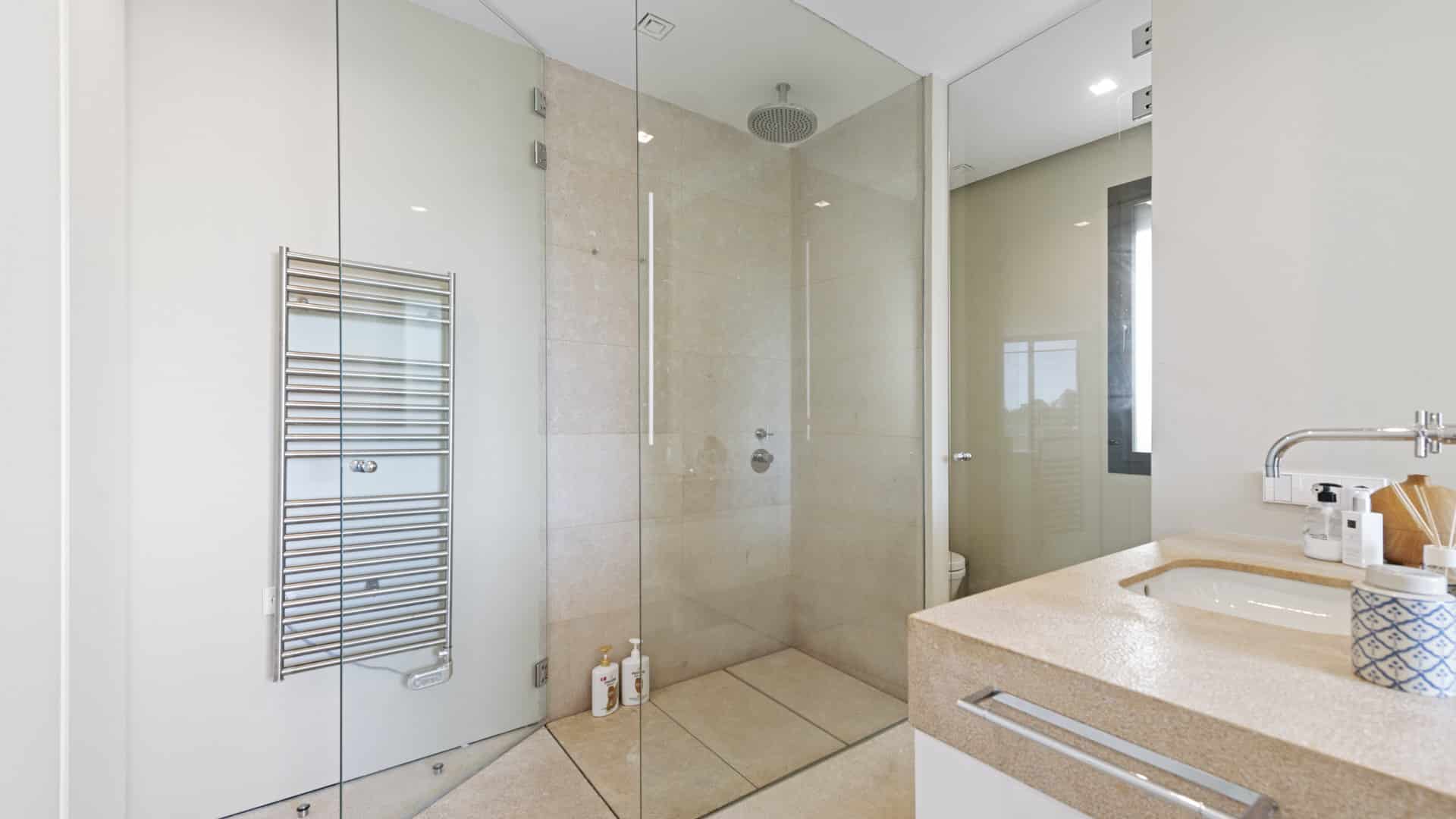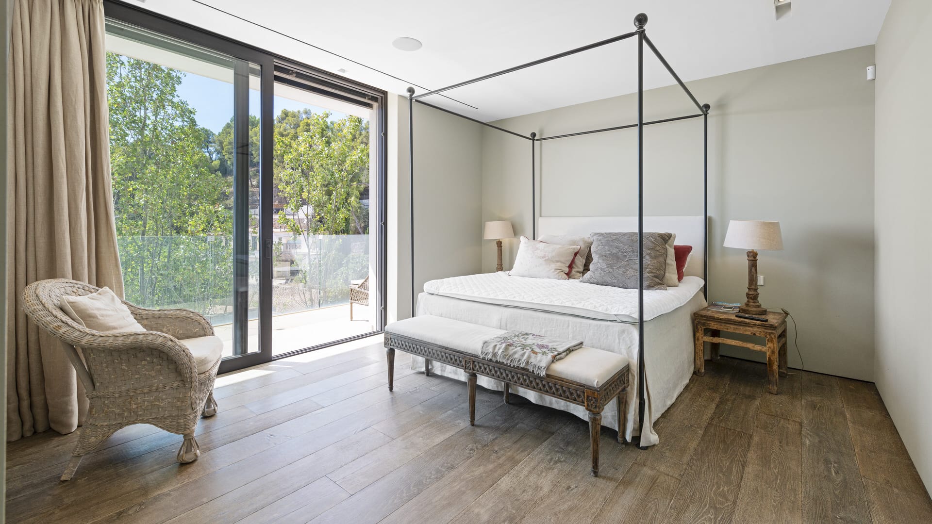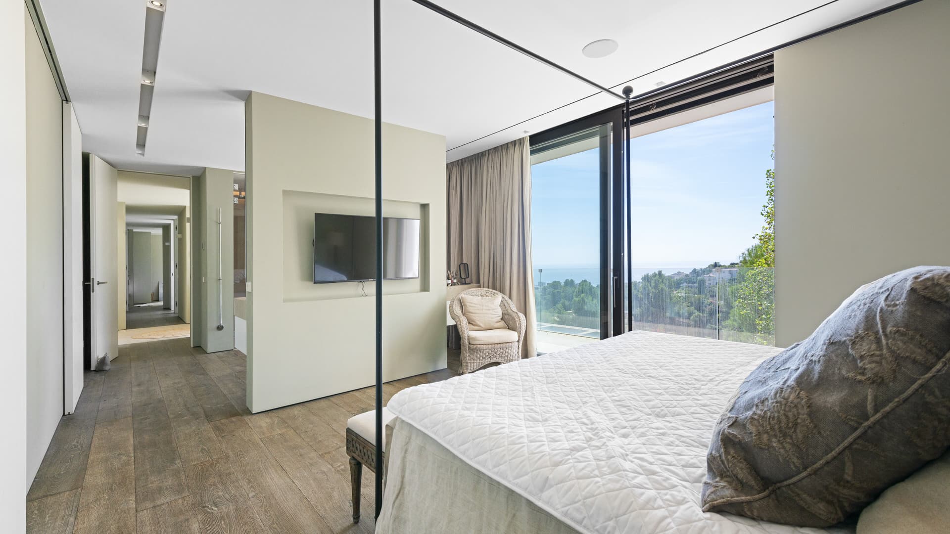 Das Obergeschoss bietet insgesamt vier Schlafzimmer mit Badezimmern en-suite, Ankleideraum und Zutritt auf eine weitere, sonnige Terrasse.