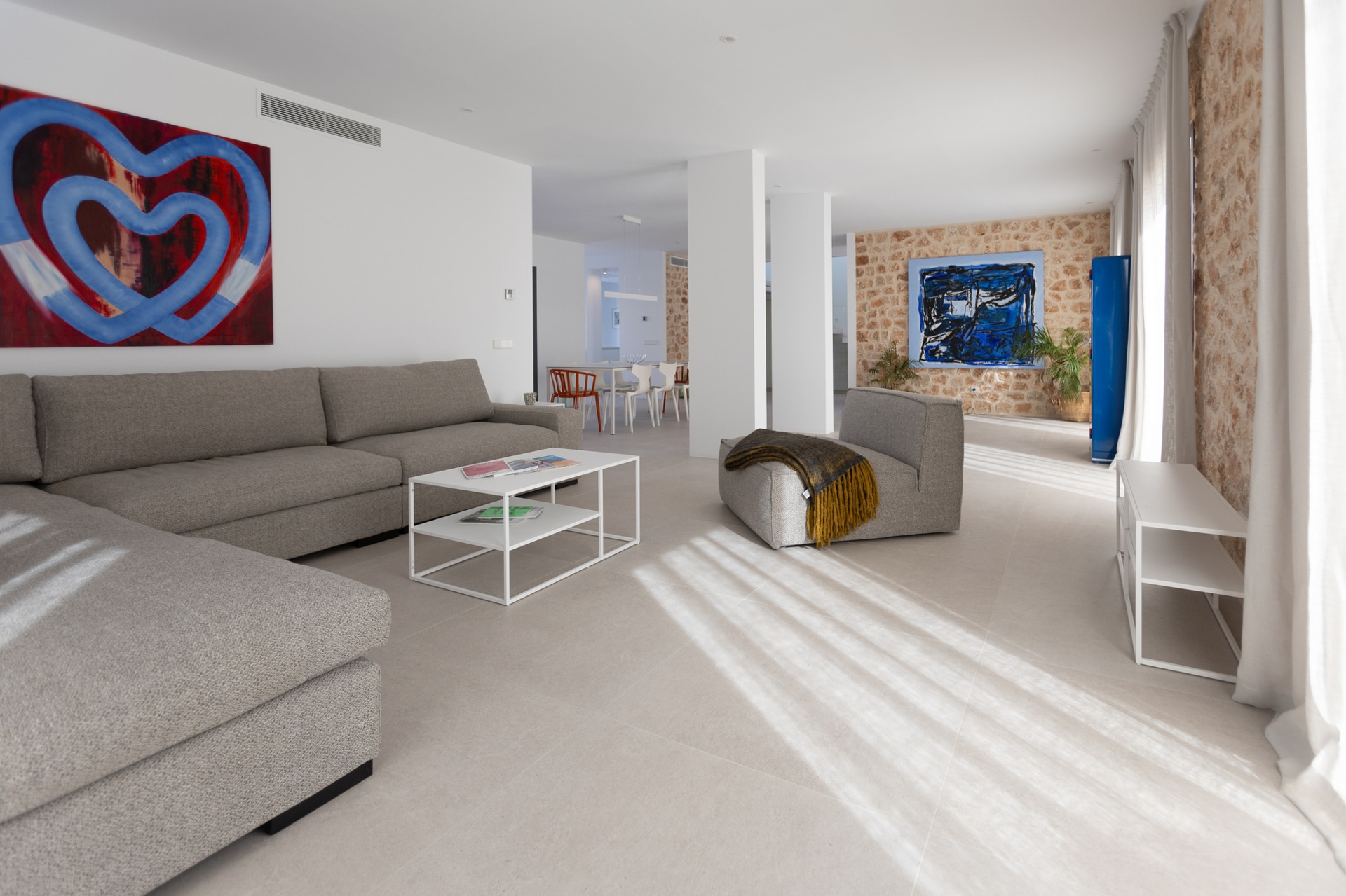 Diese moderne Villa befindet sich in Son Moja, ganz in der Nähe der Cala Santanyí und bietet sowohl Meer- wie auch Bergblick.