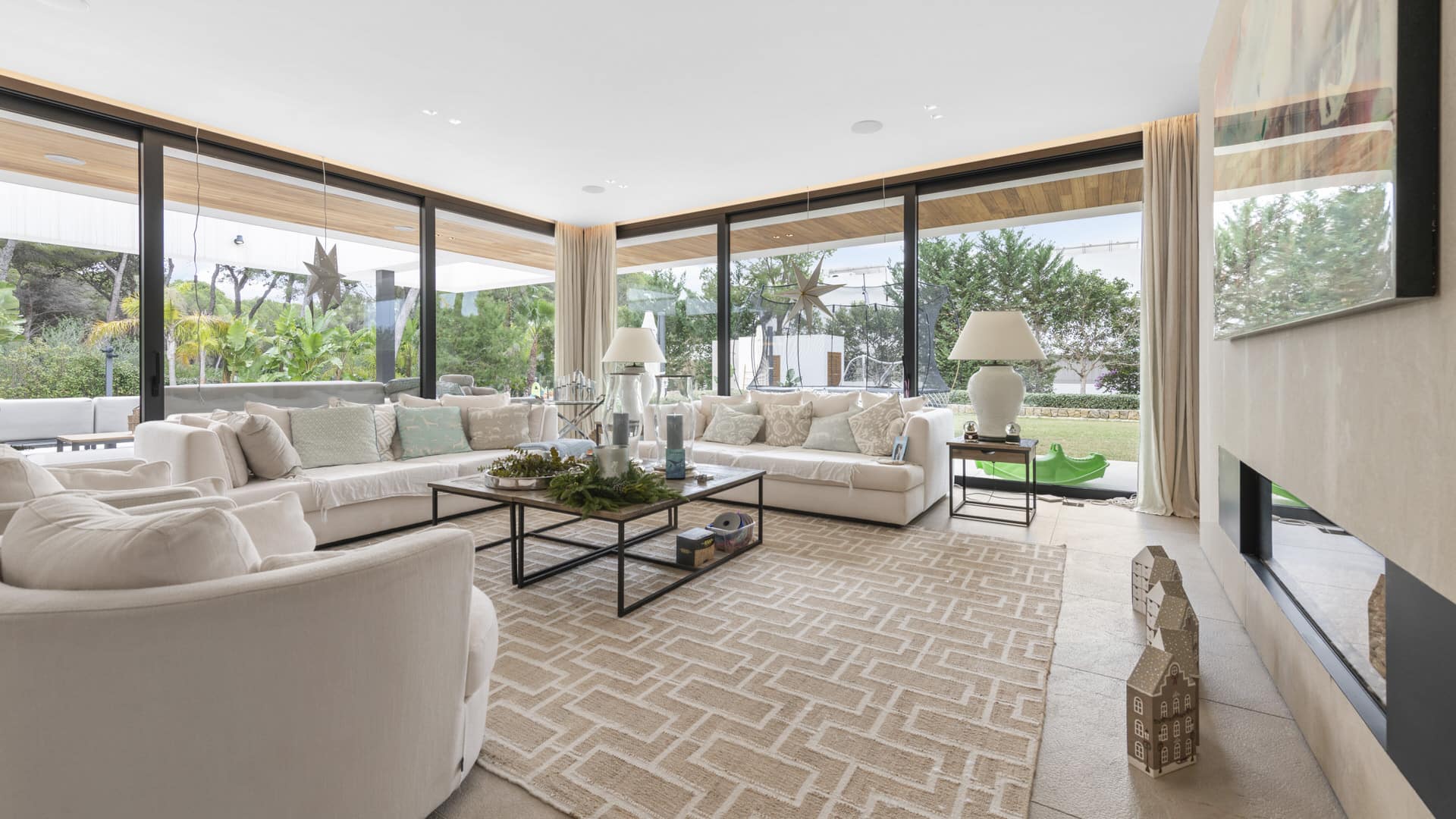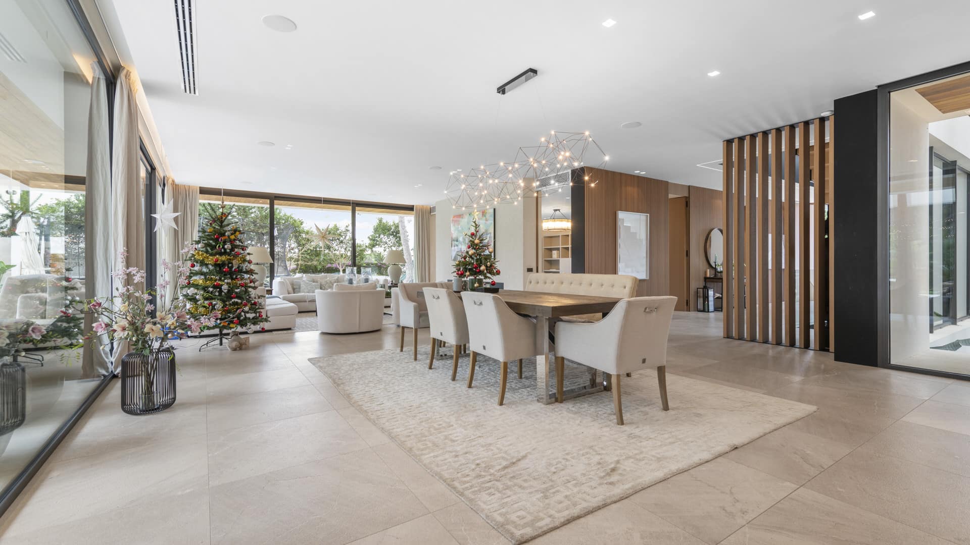 Im Obergeschoss erwarten Sie ein großzügiger Masterbereich mit Ankleide, Bad en Suite und privater Terrasse mit Whirlpool sowie vier weitere Schlafzimmer, davon drei en Suite, alle mit Terrassenzugang.