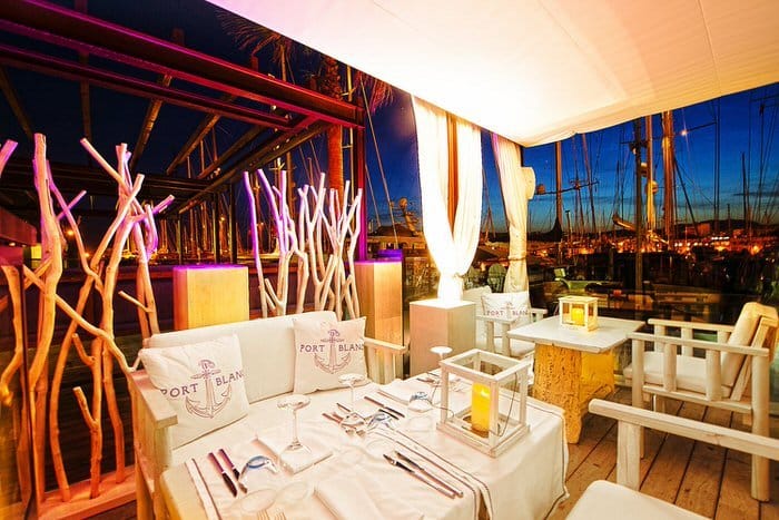 Direkt zu Füssen der weltweit bekannten Kathedrale La Seu im exklusiven Yachthafen von Palma de Mallorca, liegt das erst im Sommer 2014 eröffnete Port Blanc Restaurant. Auf 800 m² über 4 Ebenen erwartet Sie eine Kombination aus internationaler kulinarischer Vielfalt vom Josper-Grill und maritimen Ambiente mit spektakulärer Aussicht auf die luxuriösen Yachten im Hafen, das Schloss Bellver oder die Bucht von Palma. Die elegante, von der Nautik inspirierte weiße Inneneinrichtung, passt perfekt zur Location. Auf dem Josper Grill der Restaurantküche, in dem das Fleisch zu einem perfekten Geschmackserlebnis gegart werden kann, wird z.B. US Tenderloin-Rindsteak zubereitet, das mit Portweinsauce, Gemüse und Pommes serviert wird, aber auch ein Goldbrassefilet, das mit Spinat, Pinienkernen und Rosinen an einer Weißweinsauce und Jasminreis auf den Tisch kommt. Unter den Vorspeisen findet sich eine Auswahl an Gerichten zum Teilen. Die Weinauswahl ist reichlich und bietet neben mallorquinischen, nationalen und internationalen Weinen auch einige Magnum Flaschen.
