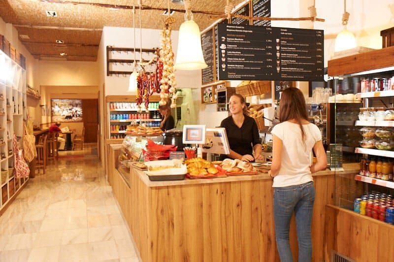 Das Es Rebost ist ein Restaurant im Herzen der Altstadt von Palma de Mallorca mitten auf der Haupteinkaufstrasse Jaime III. Das freundlich dekorierte Café erinnert an einen dörflichen Tante-Emma-Laden und bietet Sandwiches auf hausgemachtem Brot, Salate mit Bio-Zutaten, traditionelle Blechkuchen und Kekse, Naturjoghurts und frisch gepresste Fruchtsäfte - alles made in Mallorca und auch zum Mitnehmen. Es Rebost basiert auf natürlichem, lokalem und saisonalen Essen. Wir lieben den authentisch, mallorquinischen Geschmack jedoch in einem neuen Format und die liebevolle Zubereitung der Gerichte. Auch der Service ist excellent und freundlich und es gibt Tische sowohl im Innen- als auch im Außenbereich. Der mallorquinische Charakter vom Es Rebost spiegelt sich auch im Interieur wieder. Es wurden hauptsächlich authentische und traditionelle Materialen der Insel verwendet. Am Eingang thront ein spektakulärer kommunaler Steintisch aus Binissalem. Kissen und Wände sind mit den bekannten Zungenmusterstoffen aus Lloseta dekoriert und historische Fotos der Aprikosen-, Trauben-, oder Getreideernte geben einen weiteren traditionellen Touch. Dazu gibt es eine große Auswahl an mallorquinischer Musik. Im Rebost kann man zu jeder Zeit des Tages frühstücken, Mittagessen oder Kaffee und Kuchen genießen. Das Frühstck bietet eine große Auswahl an frisch gepressten Säften, hausgemachte Joghurts, Brötchen, Blechkuchen, Sandwiches, Ensaimadas und Croissants. Zum Mittagessen kann man man noch eine ganze Reihe von leckeren, ökologischen Salaten genießen.