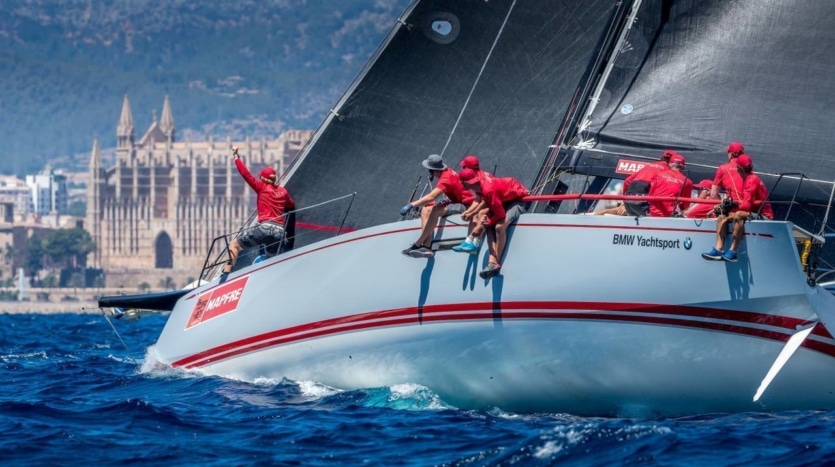 Königlich amüsiert. Club Swan 50 im Aufwind. Bei der Copa del Rey trumpft die Club Swan 50 groß auf mit 14 Yachten am Start. Erstmals tritt König Harald aus Norwegen gegen Spaniens König Felipe VI. an. Weltmeister Heidenreich hat sie bisher aber im Griff. Während die TP52 Klasse mit zuletzt nur sieben Yachten an der Startlinie eher härtere Zeiten erlebt, befindet sich die konkurrierende Club Swan 50 immer noch auf einem Hoch. Das zeigt die aktuell vor Mallorca stattfindende Copa del Rey. Denn ein Feld von 14 Schiffen in dieser Preisklasse von knapp über einer Millionen Euro kommt nicht alle Tage zusammen.