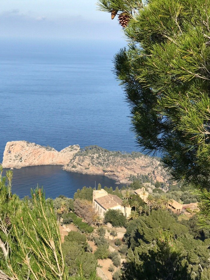 Heute möchten wir Ihnen eine Wanderung vorstellen, die auf den Spuren von Erzherzog Ludwig Salvador führt, der im Jahre 1867 Mallorca für sich entdeckte und besonders in der der Gegend von Valldemossa und Deia viel erbaut hat. Die leichte Wanderung führt vom Kloster Ermita de Santissima Trinidad zum Mirador des Tudons. Der gut zu gehende Wanderweg führt oberhalb des Meeres entlang und kann in max. 1,5 Std bewältigt werden. Traumhafte Meerblicke werden begleitet von den Zeitzeugen der Vergangenheit. Mit dem Auto fährt man von Valldemossa nach Deia auf der MA-10. Nach gut 2 km sieht man auf der linken Seite das Restaurant Can Costa bei dem man umkehren muss um in die kleine gegenüberliegende Strasse hineinzufahren. Wer mit einem großen Auto anfährt parkt am besten bereits auf dem Parkplatz des Restaurants und beginnt hier die Wanderung. Ca. 1 km geht man hier hoch zum Kloster. Die kleine Straße hoch zur Ermita ist nur mit kleinen Autos zu befahren und zum Ende hin wird es sehr eng. Verschlafen und in der landestypischen Schönheit Mallorcas liegt die Ermita de la Santissima Trinidad in den Bergen der Tramuntana verborgen. In ihrer ursprünglichen Bauweise ist das Kloster schon sehenswert und man wird schnell vom ursprünglichen Ambiente in den Bann gezogen. Die Beurkundung beginnt bereits im 13. Jahrhundert und bis ins 17. Jhrdt. wurde die kleine Klosteranlage immer wieder erweitert. Der nicht beschilderte Wanderweg beginnt direkt gegenüber der Ermita und führt unter schattenspenden Bäumen oberhalb des Meeres entlang. Nach wenigen Schritten wird man bereits belohnt mit einen schönen Blick auf einen der 80 Aussichtstürme die über Mallorca verteilt sind. Der Wanderweg führt weiter und bereits nach 5 Minuten hat man eine erste Aussicht auf die Halbinsel Sa Foradada und der kleinen Bucht, in der der Arxiduc Lluis Salvador mit seiner Nixe ankerte. Das Meer hat dort unten einen wunderbaren tiefblauen Farbton. Der Weg ist leicht und gut zu gehen, führt vorbei an Köhlerplätzen, einer Felshöhle bis man an einem Steinmännchen links abbiegt den Berg hinunter. Steinbänke links und rechterhand ein alter Kalkofen säumen den Wanderpfad. An einem roten Pfeil wandert man links weiter und erreicht schliesslich das Wanderziel, den Mirador des Tudons, der vom Erzherzog Ludwig Salvador errichtet wurde. Oben angekommen hat man einen traumhaften Weitblick auf seinen Wohnsitz, dem Schloß Miramar und dem Sa Foradada mit dem Felsenloch. Bei klarer Sicht kann man rechts auch den höchsten Berg Mallorcas, den Puig Mayor erkennen.